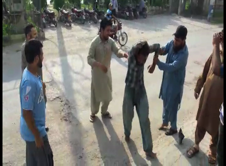 Summary The residents after beating him mercilessly handed him over to police.