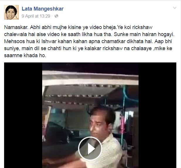 A few hours after the clip was uploaded, Indian legendary singer Lata Mangeshkar in Mumbai shared it on her Facebook page.