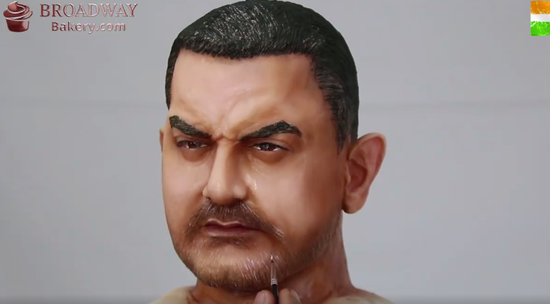 The cake features Aamir Khan as wrestler and coach Mahavir Singh Phogat and his two on-screen daughters Geeta and Babita Phogat.
