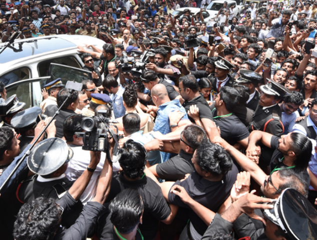 KOCHI (Web Desk) - Hundreds of die-hard fans gathered at MG Road, virtually shutting it down, to have a sight of Bollywood actress Sunny Leone as she arrived in Kerala’s Kochi for inauguration of a mobile phone showroom, reported Times of India.