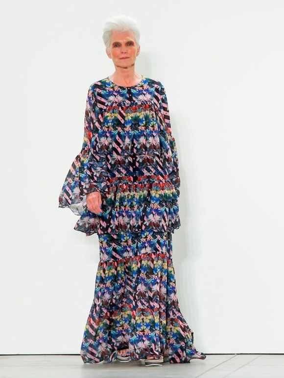 Mother of three and grandmother of 10, Maye Musk walks alongside younger models in NY fashion week