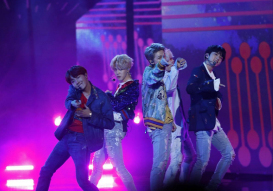 Korean boy band BTS garnered some of the loudest screams from the audience as they performed “DNA” on a neon-lit stage.