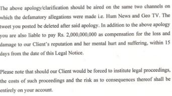 As per the notice, an apology was seeked from Ali Zafar, if he doesn’t comply than legal proceedings would be initiated.