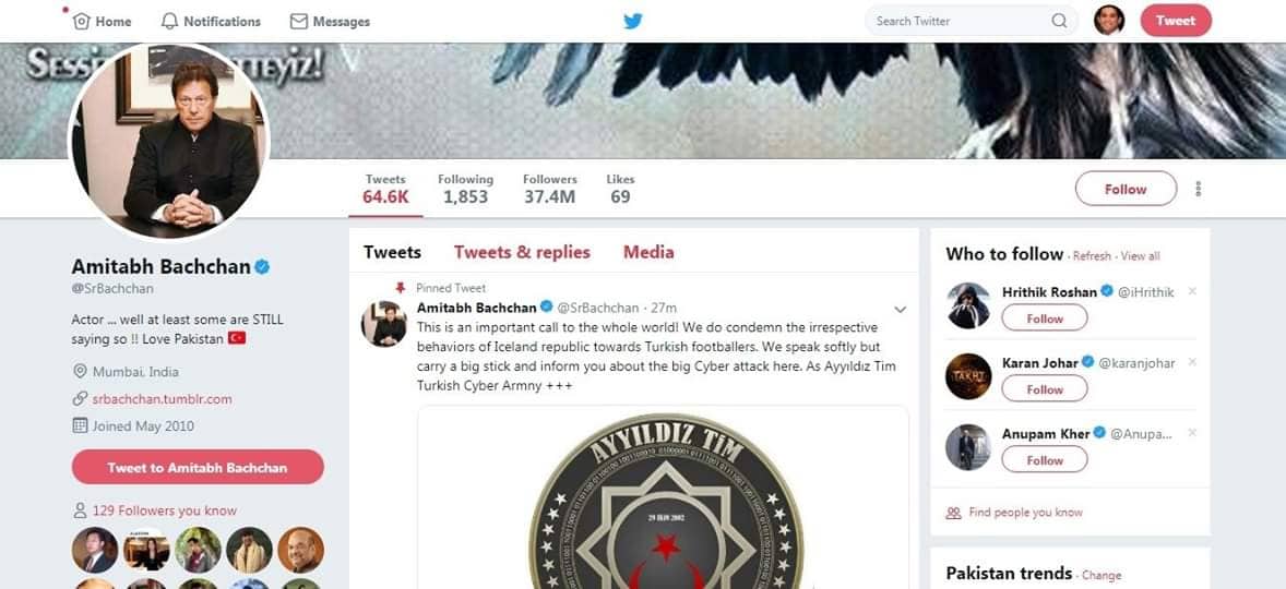 The hacker group also changed the profile picture of Amitabh with Prime Minister of Pakistan (PM) Imran Khan while they also edited the bio of the actor.