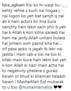 (Web Desk) – Humaima Malik who has been posting a lot of pictures of her Umrah lately was subjected to criticism over her religious act by a troll.