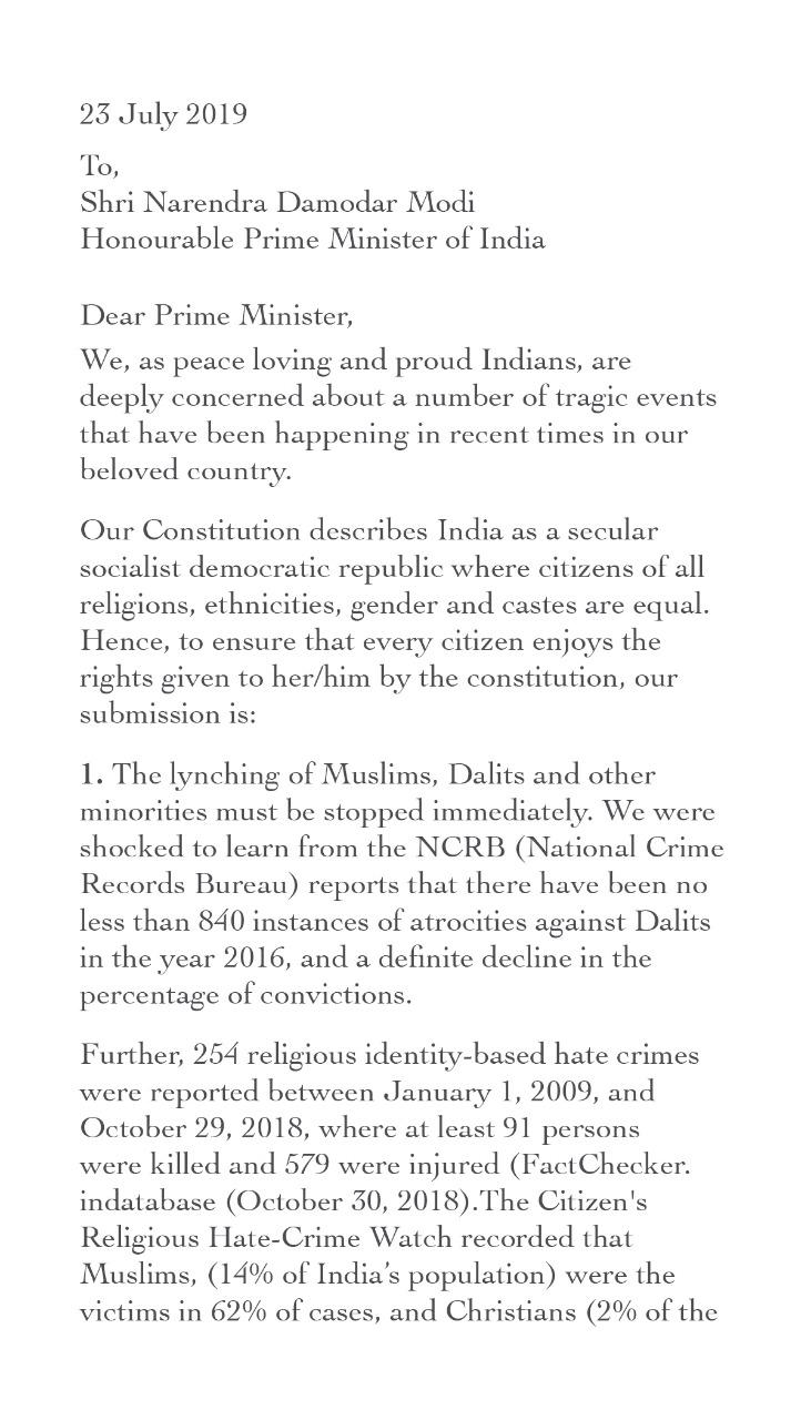 According to media reports, an open letter dated July 23, was sent to PM Modi asking for his intervention and stern action against the perpetrators of such heinous crimes happening all over India without any check and balance.