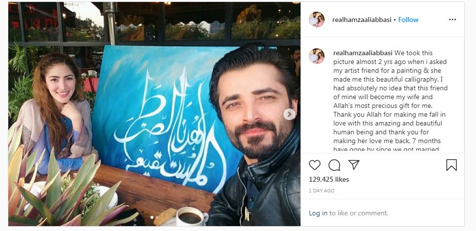 Taking to Instagram, the Alif actor shared an adorable throwback photo with wifey and wrote, “We took this picture almost 2 yrs ago when i asked my artist friend for a painting & she made me this beautiful calligraphy.”