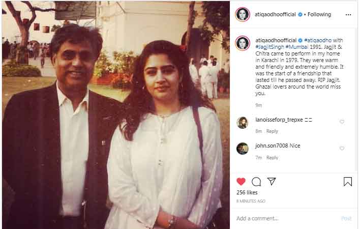 Atiqa took to Instagram and posted a picture with Jagjit that was taken in Mumbai in 1991.