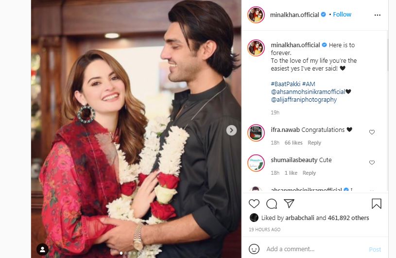 Minal Khan, Ahsan Moshsin Ikram officially announce engagement