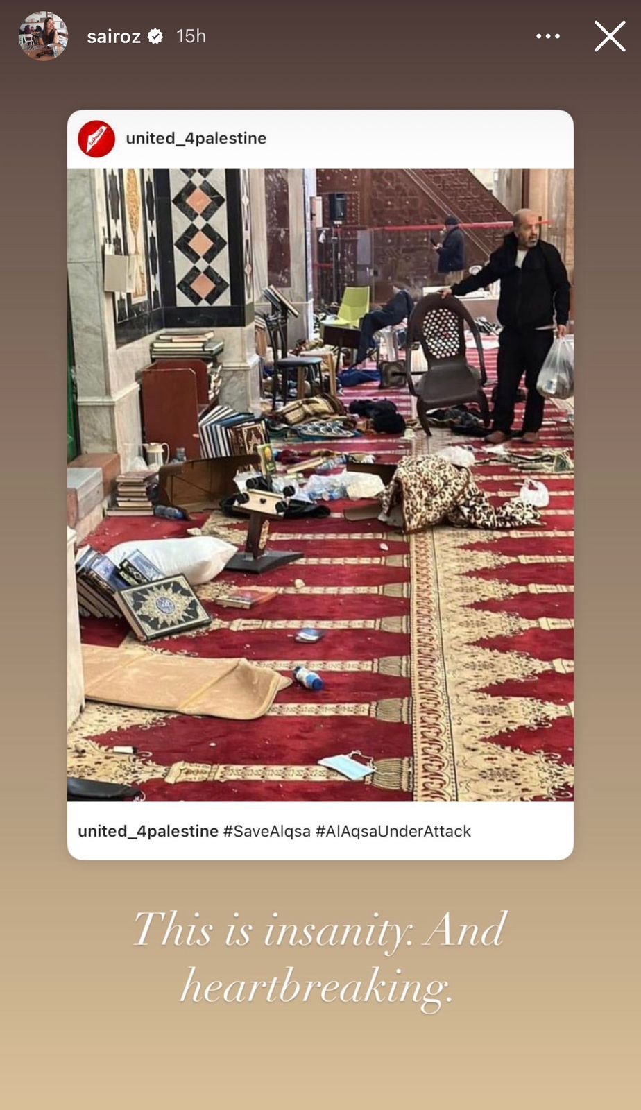 Syra, too, took to her Instagram Story to share a clip of the aftermath of the attack by the Israeli forces. "This is insanity. And heartbreaking," wrote the Sinf-a-Aahan star.