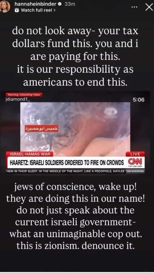 Her post, which drew widespread attention, included a graphic image and sharp criticism of US support for Israel’s military campaign.