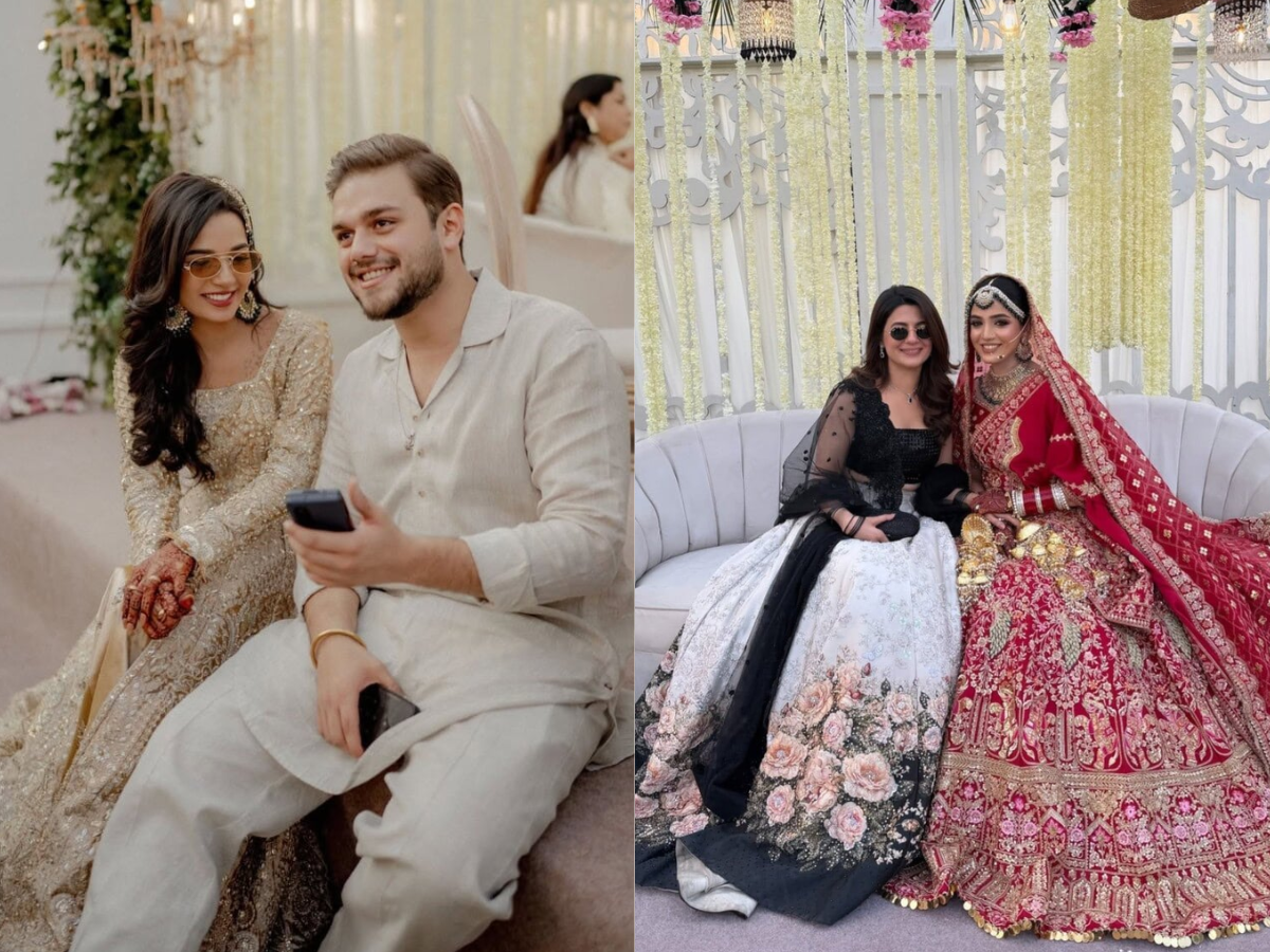 On Tuesday, Khan shared visuals from her baraat in Karachi, where she wore a red bridal lehenga adorned with intricate gold tilla and dabka work, complemented by traditional jewellery—a classic South Asian bridal look.