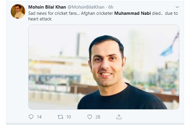 Hoax regarding death of Afghan cricketer Mohammad Nabi circulating online