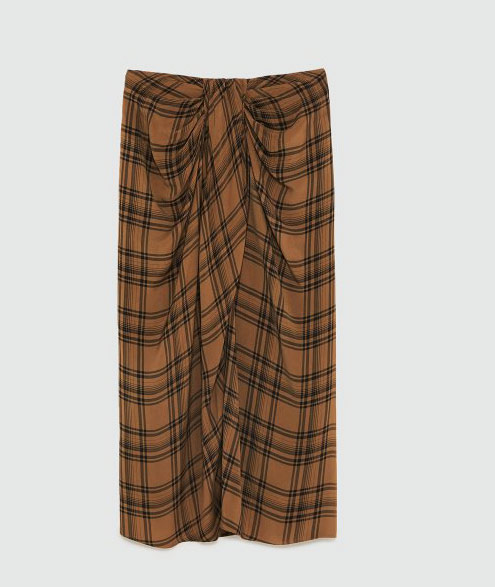 Zara pitches it ‘check mini skirt’ as having a ‘draped detail in the front’. Photo: ZARA