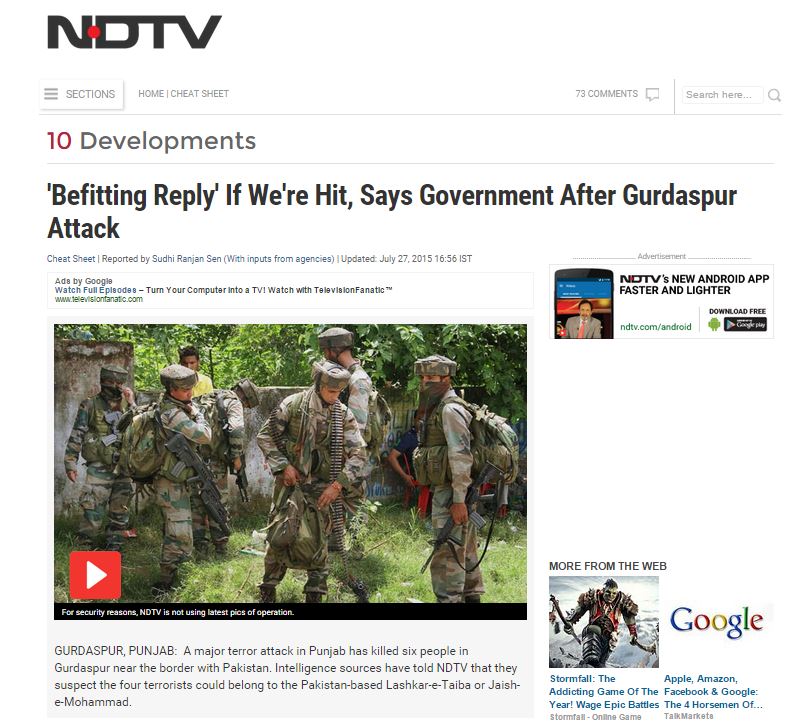 Following the attack on Gurdaspur, Indian media has been in uproar and churning out all types of propaganda against Pakistan and its secuirity forces.