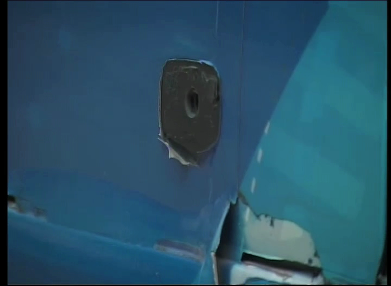 The tyres of the vehicle exploded and window panes shattered due to the attack.