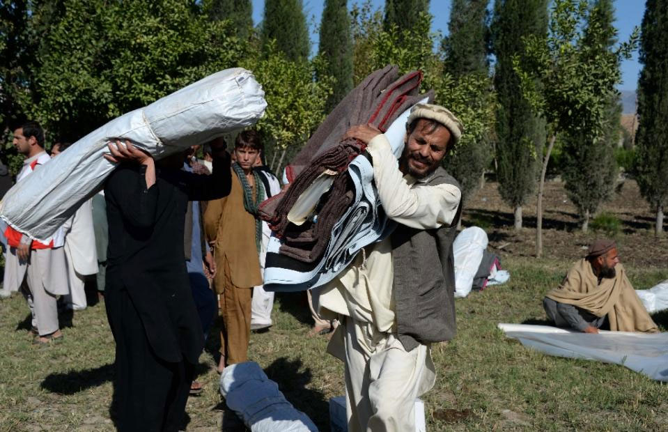 Afghan Red Crescent Society (ARCS) workers distribute aid in Nangarhar Province (AFP Photo)