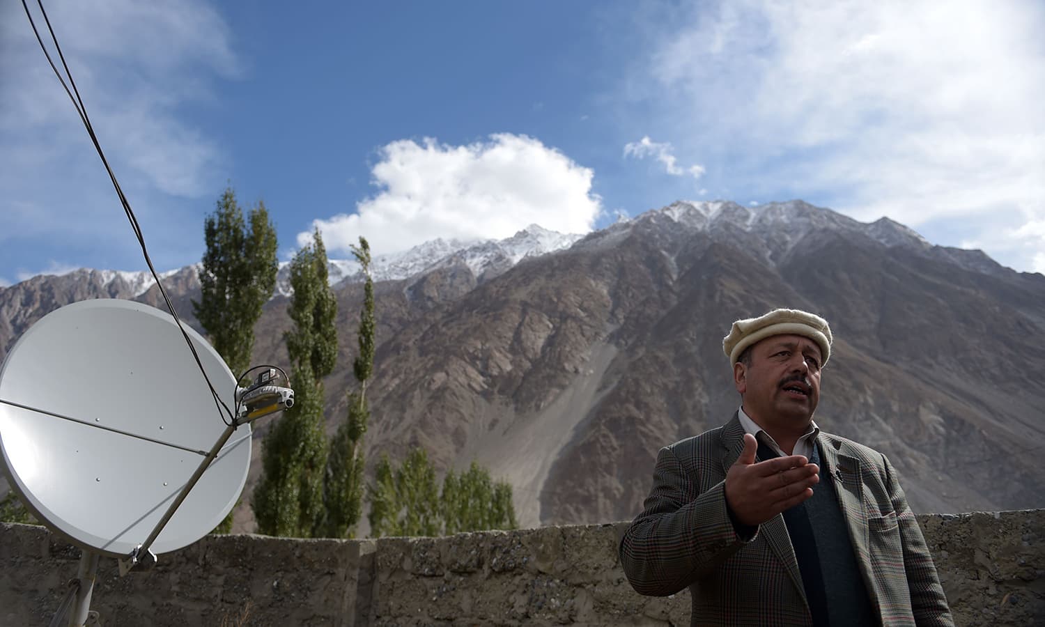 In the village, which is nestled between two peaks approaching 8,000 metres (26,000 feet) high, farmers scrabble to grow the produce as their ancestors did. But just a few metres away Karim Aslam is hammering at a keyboard on a computer connected to a giant satellite dish.