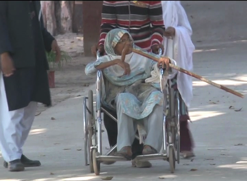 An 80-year-old devoted woman arrived in Sargodha’s polling station on wheel chair and participated in electoral process.