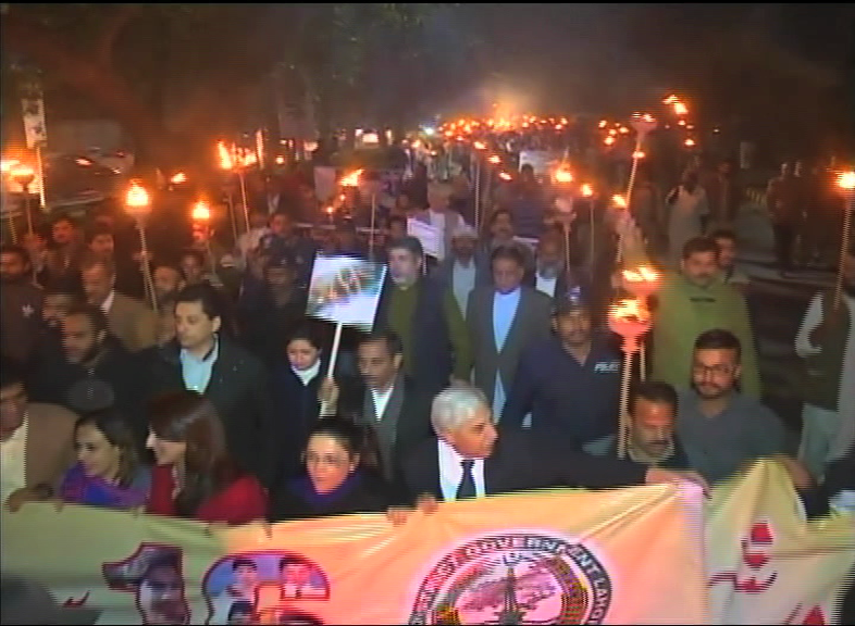 Candles were lit throughout the country in tribute. Lahore s district administration in collaboration with the civil society held a torch bearing rally from Jinnah Library to Punjab Assembly in honour of the brave martyrs. Cricket stars Wahab Riaz and Mohammad Amir also participated in the event.