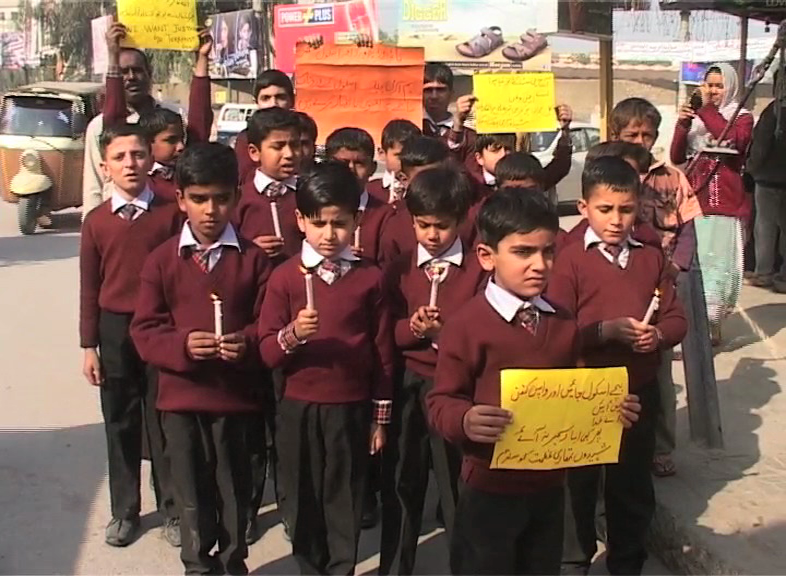 Children of Islamabad’s Pakistan Air Force (PAF) Inter College paid their respects to the departed martyrs in their own unique way. Candles were lit all over the city signifying the fact that the light of education will destory the darkness of ignorance.