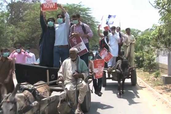 LAHORE (Dunya News) – Students of Punjab University (PU) demonstrated a protest against the administration for imposition of parking fees and shortage of buses, Dunya News reported Wednesday.