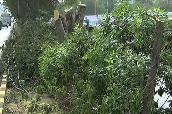 KARACHI (Dunya News) – District administration has cut down trees of Shahrah-e-Faisal’s central greenbelt amidst a season during which heat stroke incidents are still frequent, Dunya News reported Thursday.