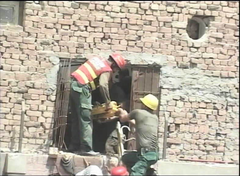 The workers and girls were recovered from the rubble and shifted to Civil Hospital for treatment, however; the woman identified as Najma died on being evacuated after 40 minutes.