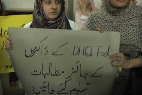FAISALABAD (Dunya News) – Young Doctors Association (YDA) has boycotted work in District Headquarters (DHQ) Hospital on Monday over non-payment of wages and other demands.