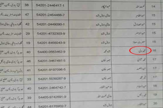 His full name, Muhammad Wali son of Shah Muhammad, is present in the list along with his identification card number and permanent residential address, Jadeed Abadi, Chaman, district Killa Abdullah.