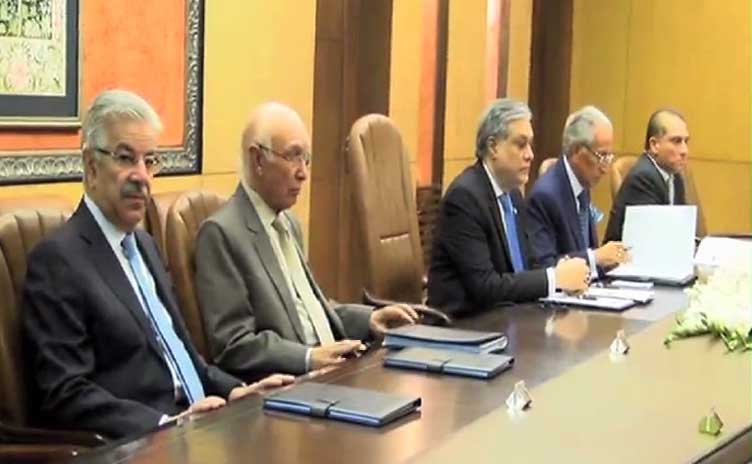 The meeting was attended by Federal Ministers Khawaja Asif, Ishaq Dar, Advisor on Foreign Affairs Sartaj Aziz, Special Assistant on Foreign Affairs Tariq Fatemi, Adviser on National Security Lt General (RTD) Nasir Janjua and Foreign Secretary Aizaz Ahmad, Chief of Army Staff General Raheel Sharif, DG ISI and other senior military officials.