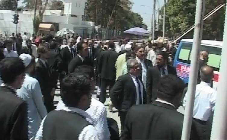 A group of lawyers arrived at the hospital and strongly protested against the incident. Later, they marched towards Governor House and raised anti-government slogans.
