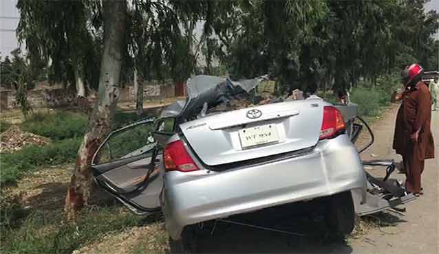 A couple died and their son was left injured after their car crashed in a tree near Jahangira area of Naushera.