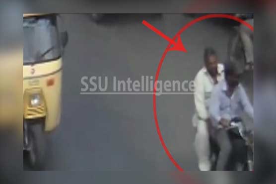 One of the CCTV footages shows two suspects atop a motorcycle with one sporting a shirt, pants and a cap and the pillion rider can be seen wearing shalwar kameez, a rather traditional attire.