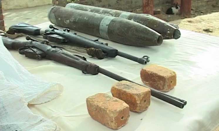 Sources told that heavy weapons including two rifles, two Russian rockets, three walkie-talkies , bullets and 40 kilograms of explosives were also recovered in Toba Nohaqqani area.
