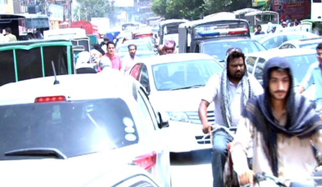 Citizens suffer due to severe traffic jam near Shimla Pahari in Lahore