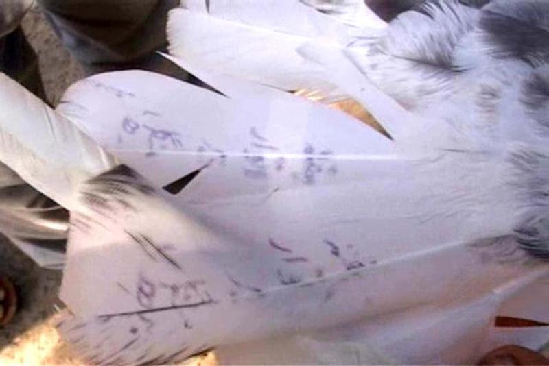 The state intelligence and army officers were inspecting the pigeon who might have flown across border from Pakistan and landed in Punjab’s Hoshiarpur district with some words in Urdu inscribed on its wings.