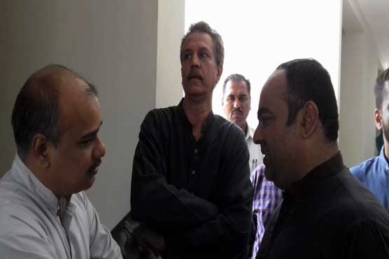 Jailed Mayor of Karachi, Waseem Akhtar clicked in the court premises after he exchanged views with the opposition leader