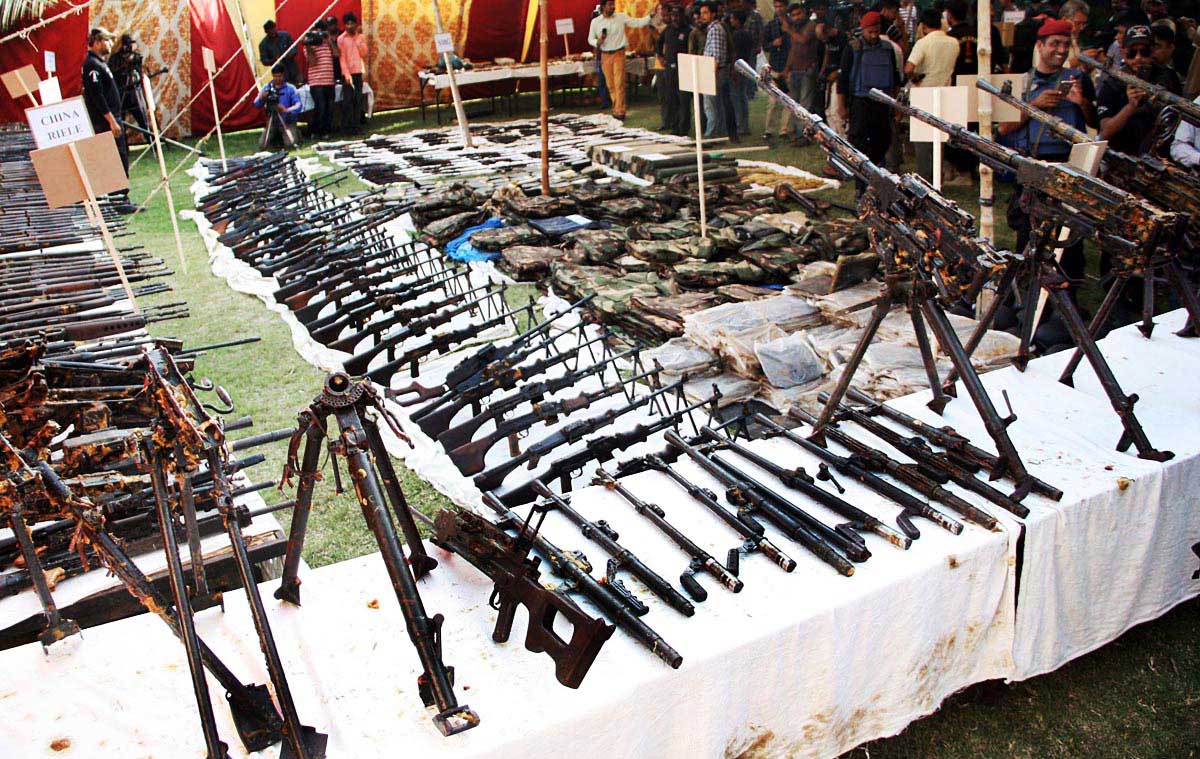 “It was biggest recovery of weapons in Pakistan’s history. We have managed to ascertain period and location of these weapons’ purchase. We believe these military weapons were stored to fight army, police and Rangers and not for target killing,” the Governor told reporters in Karachi.
