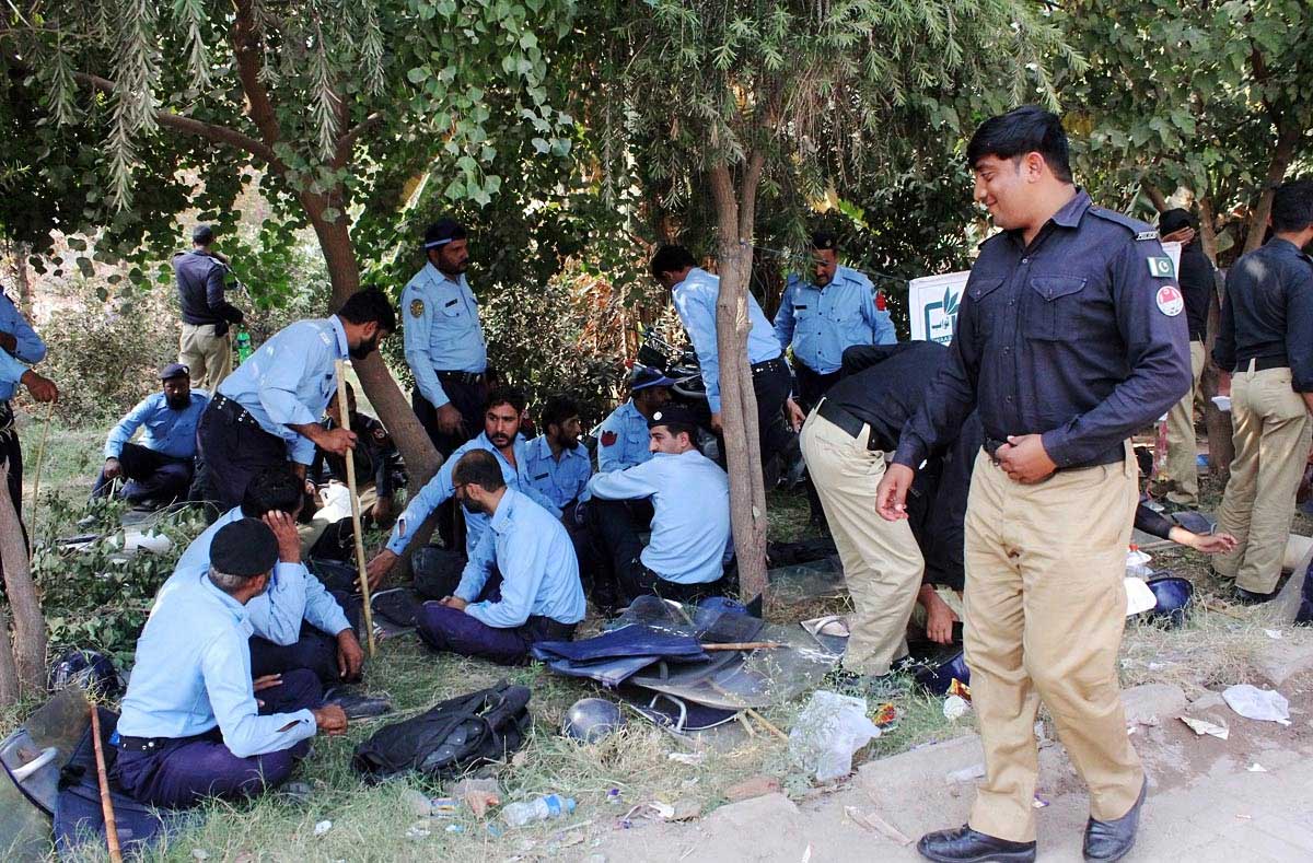 On Saturday, police had placed shipping containers at Rashkai Interchange and Khairabad Bridge. The Peshawar-Islamabad Motor¬way was closed at the Swabi Interchange while barricades had also been placed at Mardan and Nowshera roads.