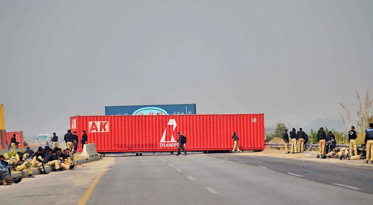 Authorities in the central province of Punjab have also closed a motorway using shipping containers, as police and paramilitary forces stand guard around the highway.