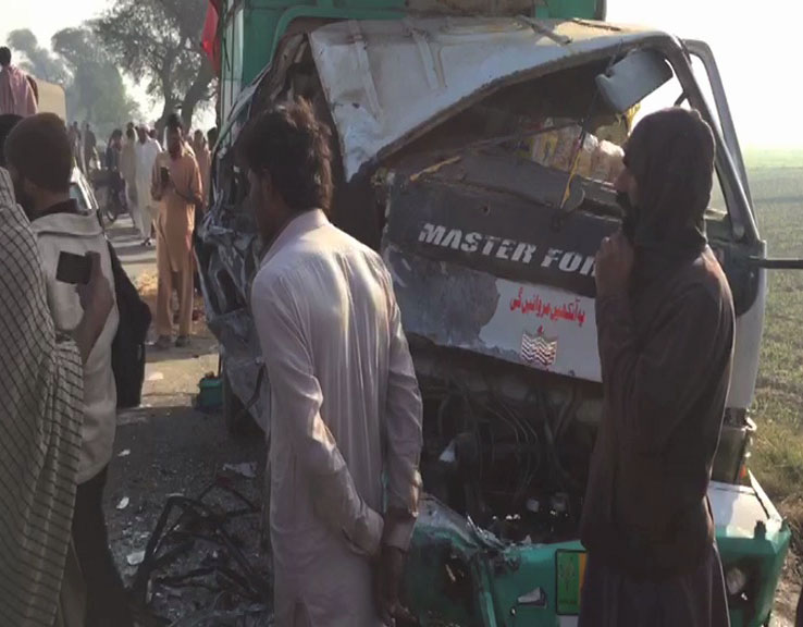 Two killed, ten injured in wagon-truck collision in Nowshera