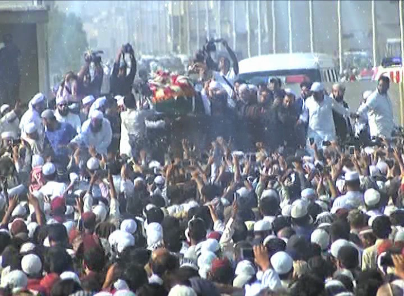 The body was shifted from Pakistan Navy Ship (PNS) Shifa to Karachi Development Authority (KDA) using an ambulance where a funeral prayer was offered. The prayer was led by cleric, Maulana Tariq Jameel.