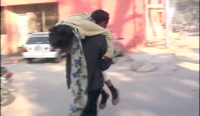 In another case, a girl named Rubina, resident of Madina Town, became unconscious and was being taken to civil hospital on the shoulder of her father due to blockage of roads.