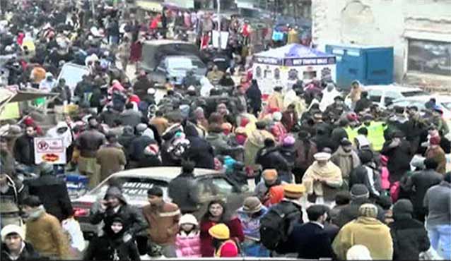 Tourists from all parts of Pakistan flocked to Murree to enjoy snowfall, Mall Road full of tourists