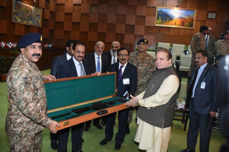 The premier was accompanied by Chief of the Army Staff, General Qamar Javed Bajwa, Federal Minister for Interior, Chaudhry Nisar Ali Khan and Federal Minister for Defence Production, Rana Tanveer Hussain among other dignitaries.