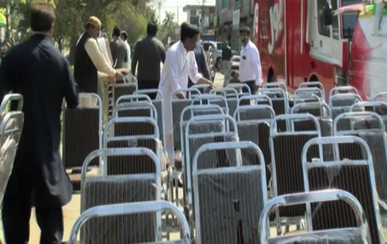 Furious by the move, PTI leaders and workers set the chairs on the road.