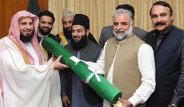ISLAMABAD (Dunya News) – Imam-e-Kaaba Muhammad Salih Bin Ibrahim paid a visit to the parliament on Saturday and prayed for prosperity of the ummah and progress of Pakistan.