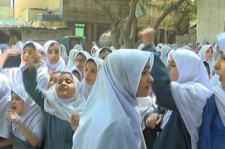 KARACHI (Dunya News) - School staff and students on Monday refused to bow down before powerful land mafia and registered protest by resuming educational activities on rubble of the 86-year-old Jufelhurst Government School. The school faculty and students also chanted slogans against the culprits involved.