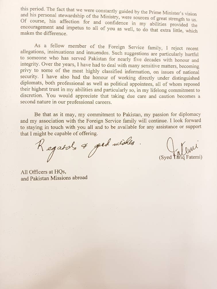 He said that his commitment to Pakistan, his passion for diplomacy and association with the Foreign Service family will continue whereas he also assured to be available for any assistance or support.